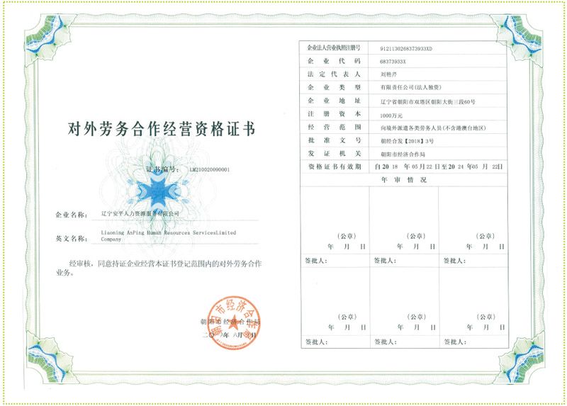 對外勞務合作經營資質